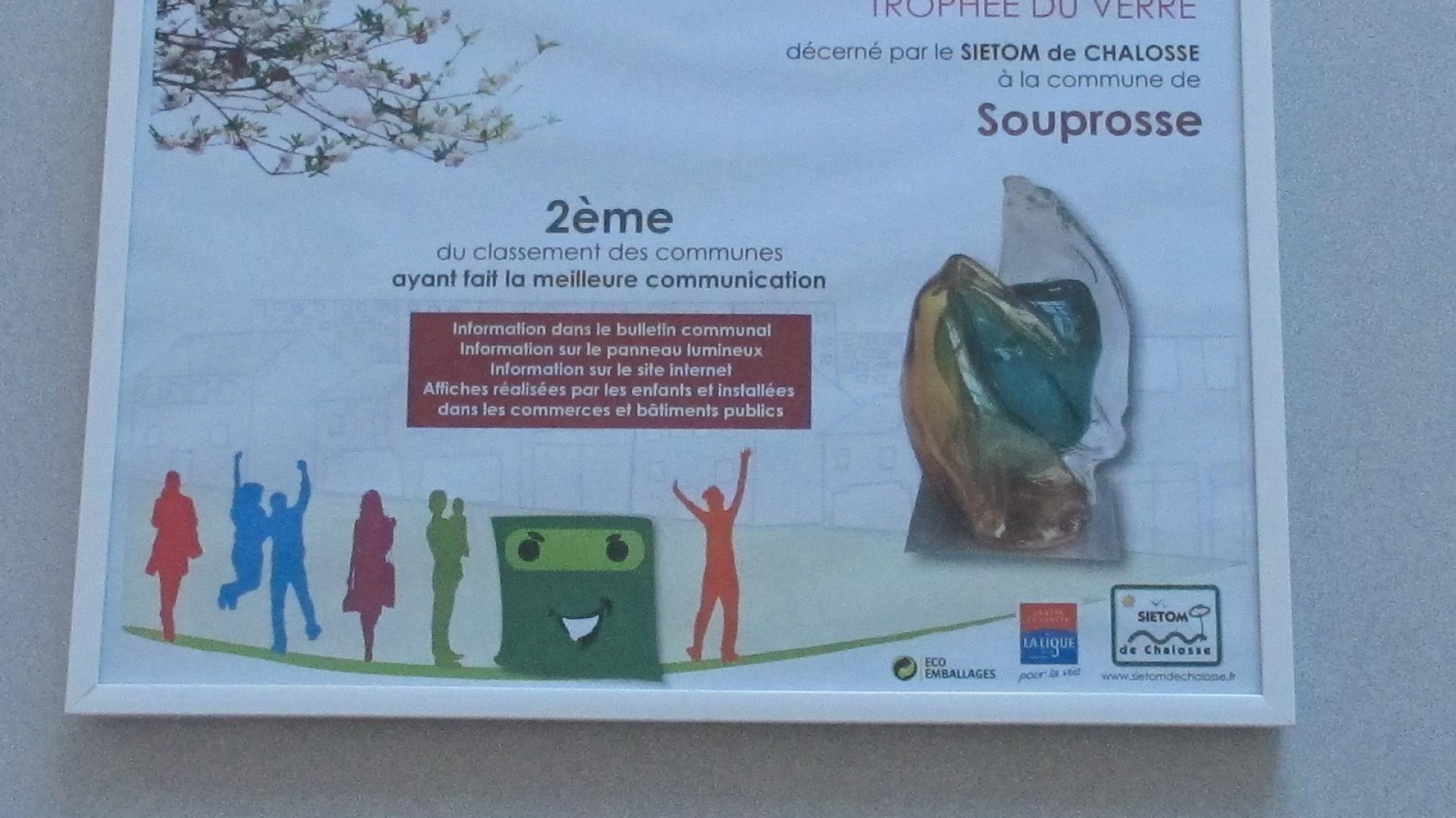 C'est sur ce dernier point que notre commune s'est classée deuxième sur 20 autres communes participantes. En effet Souprosse a fait preuve d'une excellente communication, à savoir : information dans le bulletin communal, sur le panneau lumineux, sur le site Internet, affiches réalisées par les enfants du groupe scolaire et installées dans les commerces et bâtiments publics. Merci à vous tous !