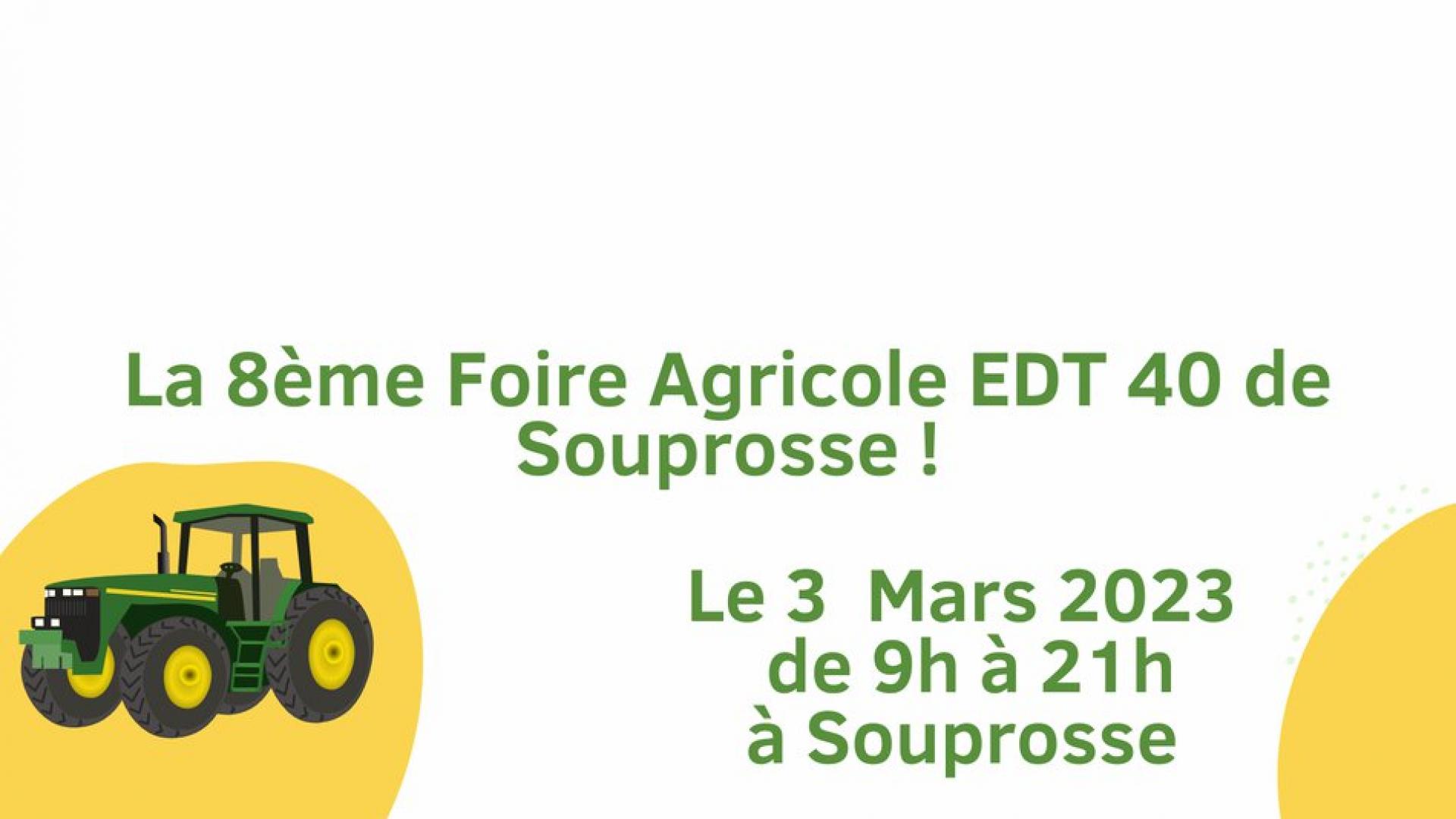 Découvrez l'ensemble des exposants lors de la foire agricole de SOUPROSSE le 3 mars 2023. Repas sur place.