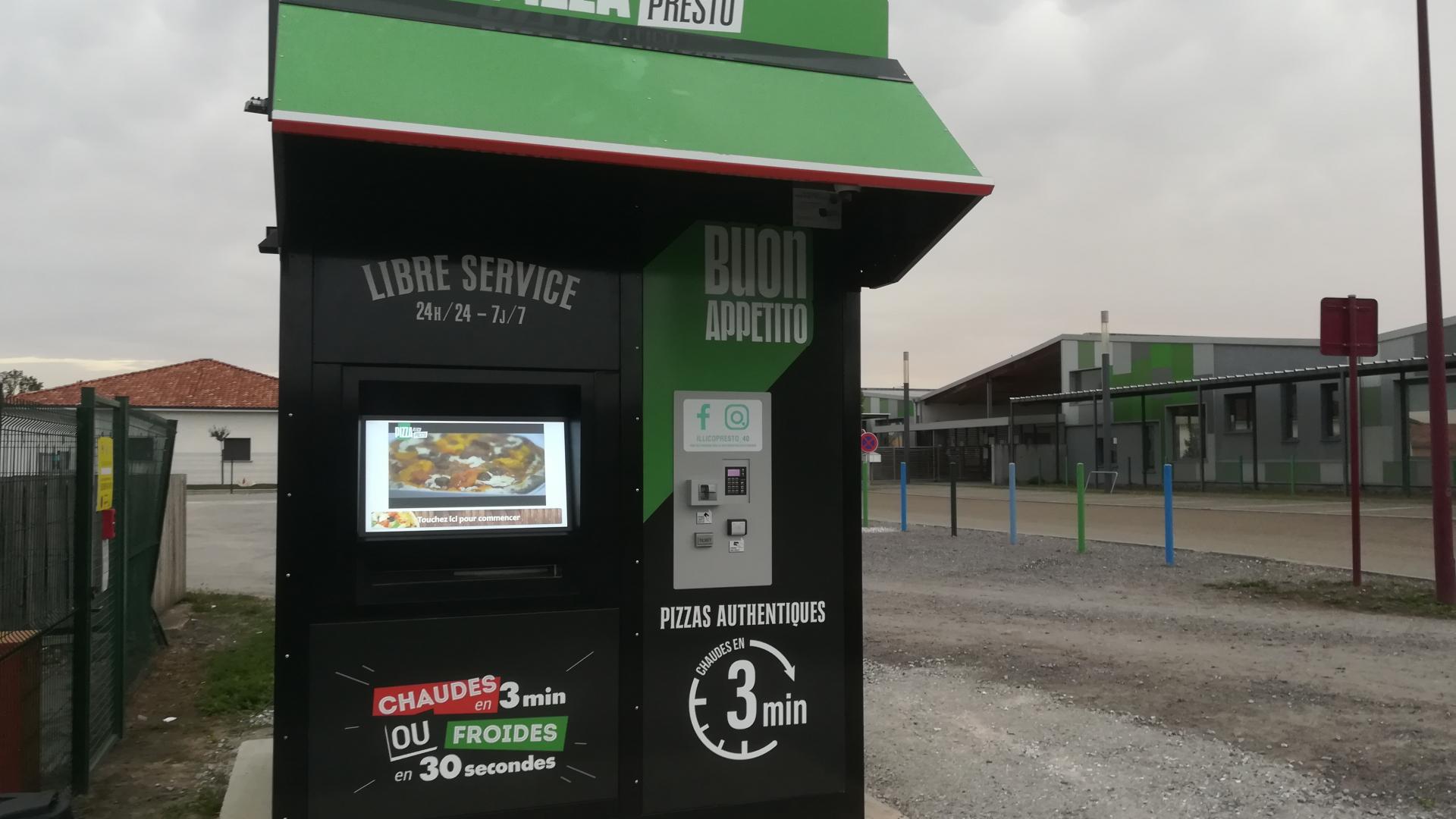 Situé à l'entrée du parking de l'école, le nouveau distributeur de pizza vous attend.