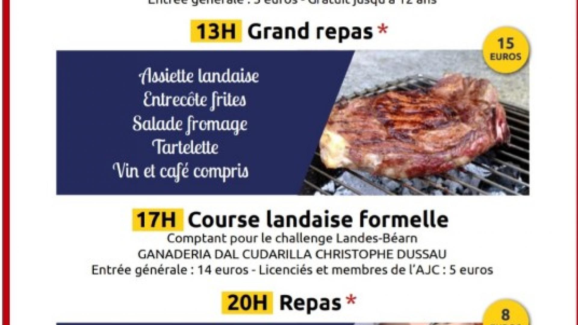 Repas sur réservations avant le 30 août, auprès de la mairie de SOUPROSSE : 05.58.44.23.97 ou au 06.77.61.08.30 (Dominique)