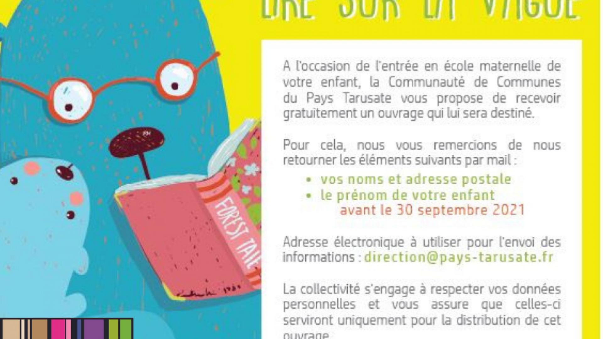 Comment en bénéficier ? : envoyer un mail à direction@pays-tarusate.fr en précisant votre nom et adresse postale ainsi que le prénom de votre enfant avant le 30 septembre 2021